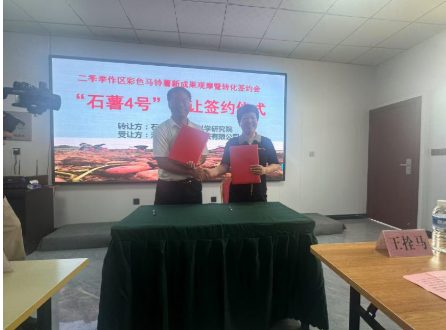 此次观摩会可不只是一场“看薯会”,现场除了举行石家庄市农科院马铃薯新品种石薯4号的转让签约仪式,还组织了彩色马铃薯高效栽培管理技术培训。为加速二季作区彩色马铃薯新成果落地,助力栾城区富硒带彩色马铃薯产业发展,同时培养专业技术人才,推动乡村振兴。
