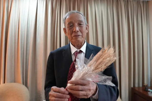 金黄籽粒,掌心相递,没有精致包装,却重若千钧。三位深耕小麦育种数十年的老专家,把最珍贵的科研成果当作见面礼。