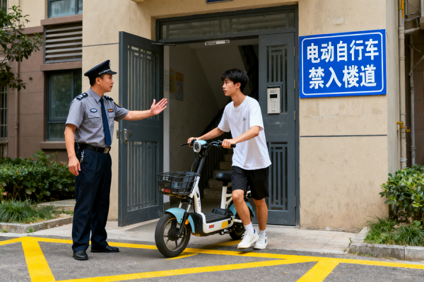 住宅区物业服务企业要做好共用消防设施、器材的维护管理,加强防火巡查;发现堵塞、占用疏散通道和电动自行车违规停放、充电等影响消防安全的行为,要及时劝阻和制止;劝阻和制止无效的,应向相关部门报告并协助处理。