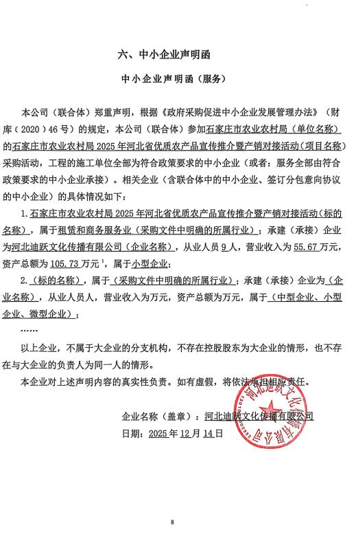二、项目名称:石家庄市农业农村局2025年河北省优质农产品宣传推介暨产销对接活动