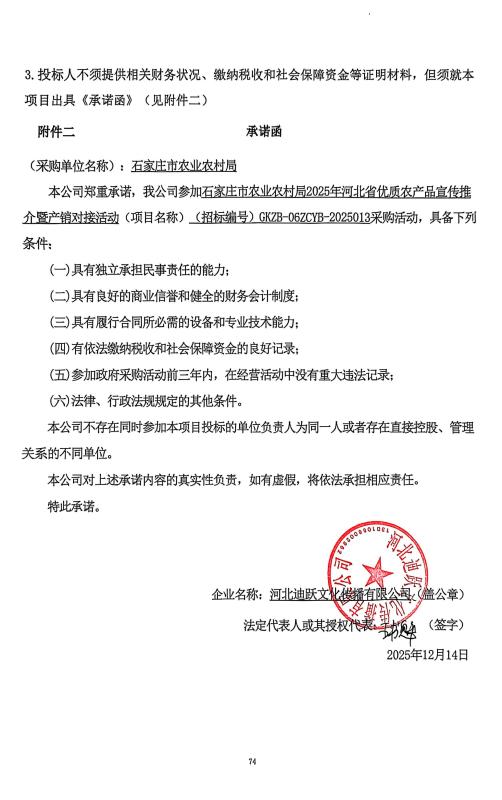 石家庄市农业农村局2025年河北省优质农产品宣传推介暨产销对接活动竞争性谈判成交公告