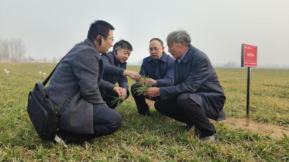 在辛集市马兰农场的麦田里,河北省小麦专家指导组组长郭进考正跟与会专家一起查看苗情。“虽然冬季温度偏低,但降雪覆盖,未造成冻害。当前小麦主体麦田的特点是:墒情足、冻害轻、群体足、个体壮。”郭进考介绍。